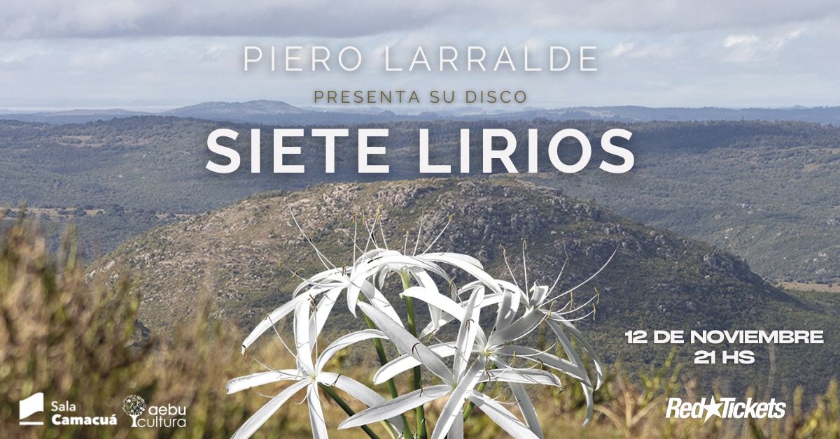 Piero Larralde Realiza la presentación de su primer disco “SIETE LIRIOS” el cuál fue creado y pensado junto a Rui Cedrez. El proyecto musical cuenta con la banda fija de Nelson Cedrez en Batería, Leonardo Anselmi en Contrabajo, Rui Cedrez en guitarra y voz, más otr@s grandes músic@s invitad@s, que estarán en esta presentación.