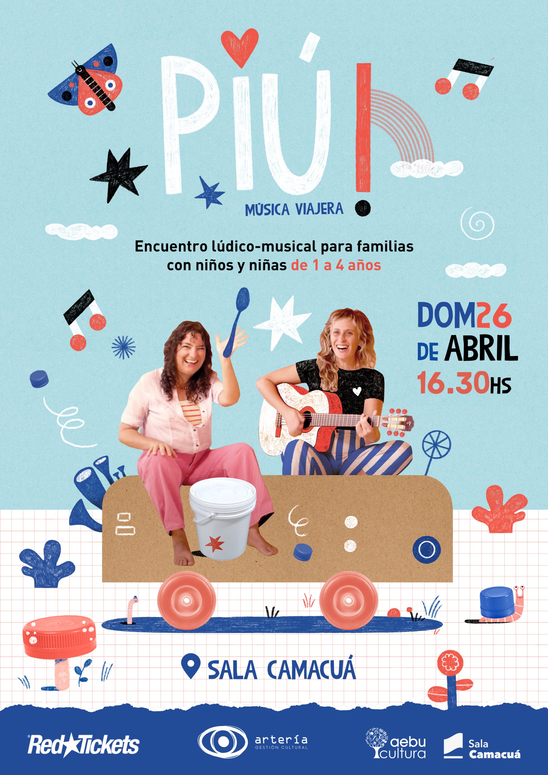 Piú Música viajera en la Sala Camacuá presenta un espectáculo musical participativo destinado a familias con niños y niñas de 1 a 4 años, que promueve el encuentro entre grandes y chicos y el disfrute que otorga ser protagonistas de una experiencia oportuna para estas edades.